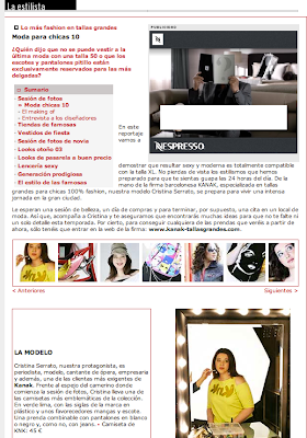 Parece que fue ayer cuando comencé mi andadura como modelo y ya han pasado casi quince años, ¡guau! Estoy orgullosa de haber sido una de las primeras mujeres de nuestro país en haber llevado la plus size a pasarelas, editoriales en revistas y catálogos de moda, pero mucho más de que las cosas hayan cambiado y ahora sea algo natural. Aquí os dejo mi reportaje en Terra: